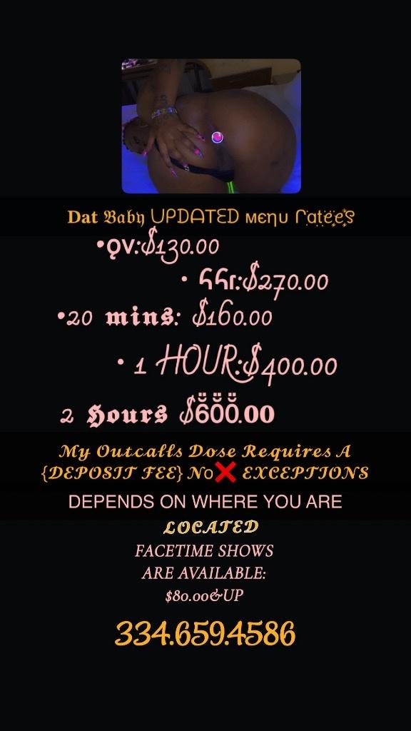 PLEASE READ MY AD BEFORE CONTACTING !!!!IM A VOLUPTUOUS FREAKY EBONY CAM SESSIONSFACETIME SHOWS I M UR STRESS RELIEF I Cater TO ALL MAKING MOVIES LETS RECORD OUR SESSIONS NOT YOU BUT I WILL SEND YOU A COPY FOLLOW MY SOCIAL MEDIA BELOW FOR MY UPDATES DATES CONTENT FETISH FRIENDLY SHOWER VIDEOS Videos Masturbation Movies Dildo Play Toys Anal Playgirl TOY PLAY MY SERVICE NOT CHEAP&Sexy, sweet by nature with beautiful curves and warm soft mocha body. You can expect a treatment that involves: Massage that is designed to smooth and relax you with relaxing music, Sensual touch, Nuru, naturist or romantic. Pretty Face, Pretty FEET and TOES Always Smelling AMAZING CLEAN/Tight/WET EVERYTHING Great with Hands, Mouth, and BODY, Make me Discrete and PROFESSIONAL! No discrimination based on race, gender, religion, ability, or appearance. Always fresh out of the shower just for you. Hair, Nails, Makeup Always Done. Immaculate hygiene. No law enforcemen NO HEAD SPECIALS I WANT MY ENTIRE FEE FOR THIS GOOD tHROAt THE PRICE WILL STILL BE THE SAME TOO NO TEXTN and RUTHLESS TALKN ILL JUS BLOC YOU ANAL IS AVA BUT ITS A EXRTA $200.00 TO MY DONATION !! NO EXCEPTIONS !!OVERNITE STAYS ARE AVA $2,000 UPFRONT!! COUPLES ARE AVE $1000.00 ALL FETISH ARE AVAILABLE AS WELL PRICES MAY VARY!!!! FOLLOW MY INSTAGRAM : Datbaby_Ur_futurecma SNAPCHAT: bookmenwdatbaby or bookmeurfav304 INSTAGRAM : datbaby_ur_futurecma I ACCEPT APPLEPAY CHIME PAYPAL CASHAPP BELOW ARE DEPOSIT FEE ONLY!!! OUtCALLS ARE AVAILABLE BUT REQUIRES A {Deposit} fees that dose not come outta my donation IF YOU ARE NOT COMFORTABLE SENDING DEPOSIT FEE YOU ARE MORE THAN WELCOME TO COME TO ME BUT I'M NOT MOVING WITHOUT MY DEPOSIT FEE!!!!!! MERIDIAN: 50.00 MARION:$40.00 Collinsville : $50:00 Launderdale:$50.00 Enterprise:$50.00 Bailey & Russell: $50.00 I DO NOT DO SPEAKER PHONE IF I HEAR MYSELF ECHOING IMA DISCONNECT THE CALL & BLOCK YOU A am meeting Men, Women |